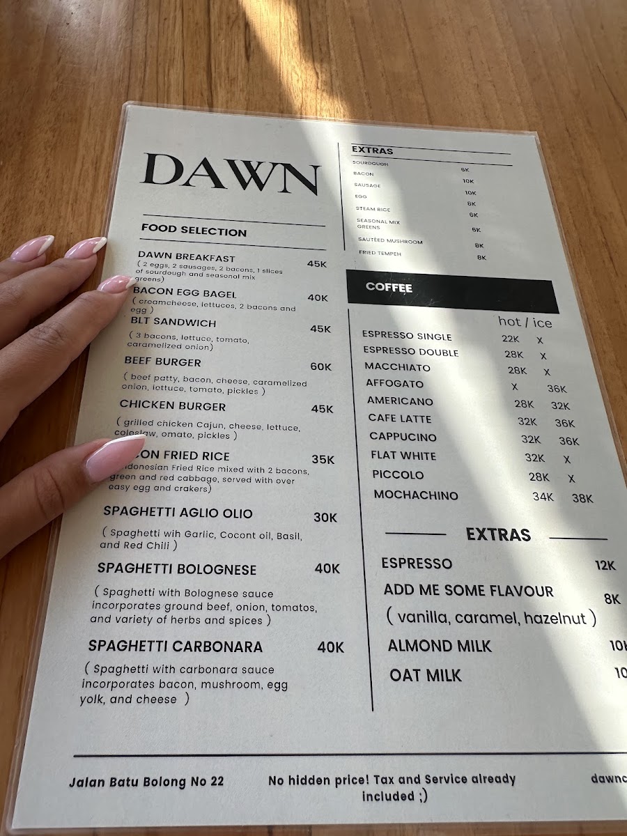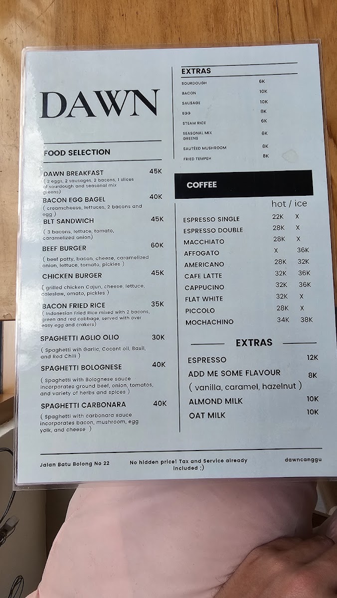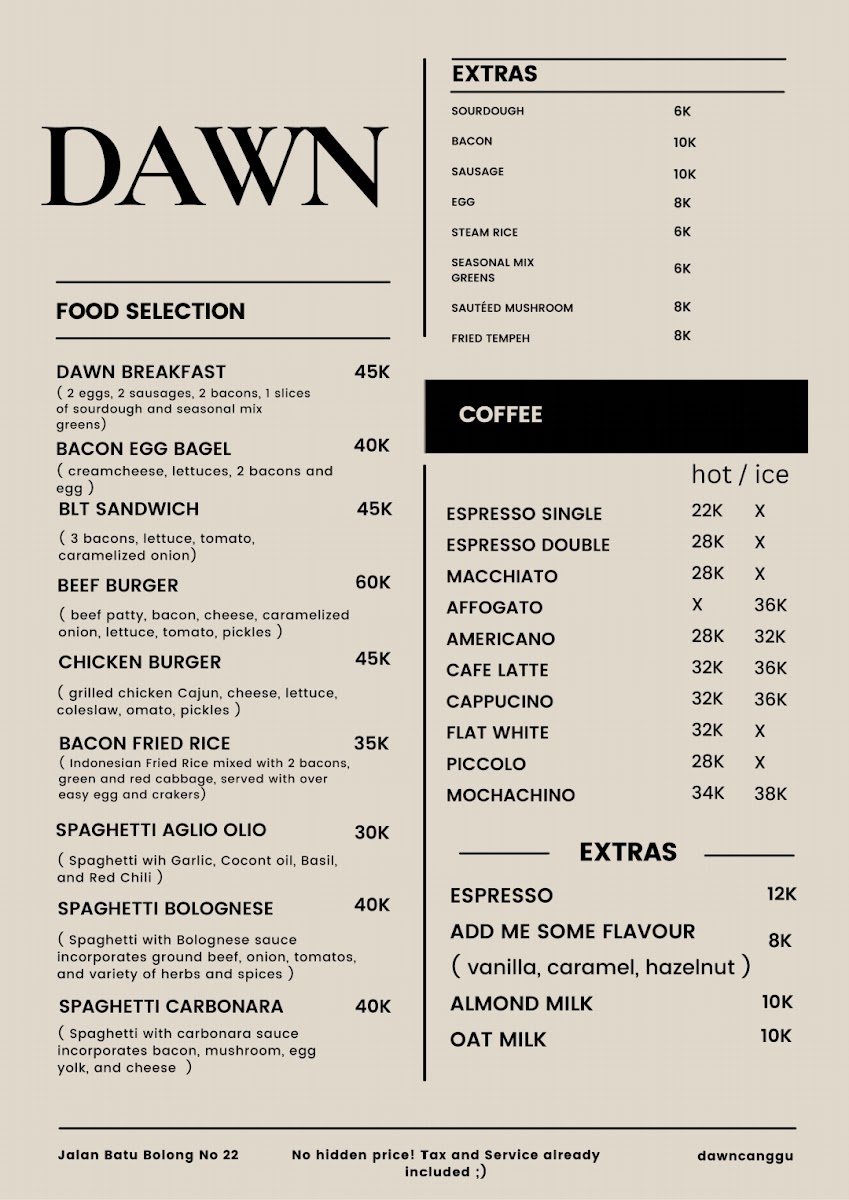 Welcome to the charming world of Dawn Coffee and Eatery Canggu, a hidden gem nestled on the bustling Jl. Pantai Batu Bolong, in the heart of Canggu, Bali. As you step into this delightful eatery, you are immediately enveloped by a welcoming vibe that perfectly complements the vibrant atmosphere of the area. The space is thoughtfully designed, creating a comfortable ambiance ideal for a casual meal or a quick caffeine fix.
